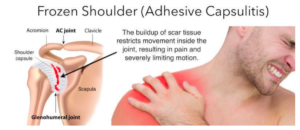 In the case of frozen shoulder, the shoulder capsule becomes very thick and tight and making it hard to move. One of the most common causes of a frozen shoulder is the immobility that may result during recovery from a shoulder injury or a broken arm. Some medical experts also refer to the frozen shoulder as a “self-limiting” condition, meaning it will eventually go away on its own. In some cases, people with this may not regain their full range of motion.
